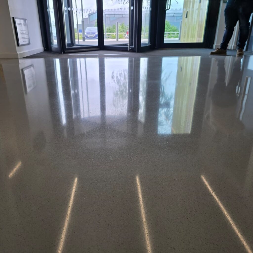 The Result is an incredibly rich, lustrous shine with beautifully exposed aggregate. The floor will actually reflect not only the lighting in the facility, but will also mirror the colours from the objects surrounding it.