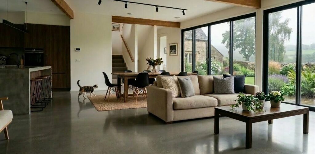 ProFloor SP polished concrete floor is the ultimate partner for underfloor heating (wet and electric systems). At thinner layer, the floor sits closer to the heat source, eliminating thermal lag for a rapid-response, energy-efficient, and warm-to-the-touch experience.